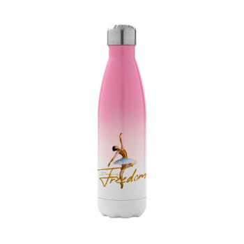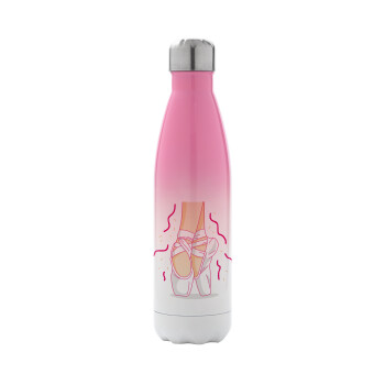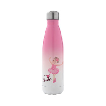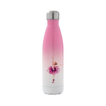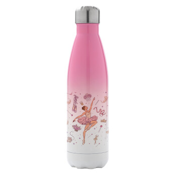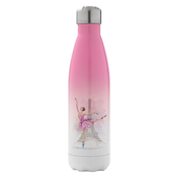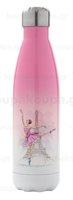 Ballerina in Paris, Μεταλλικό παγούρι θερμός Ροζ/Λευκό (Stainless steel), διπλού τοιχώματος, 500ml