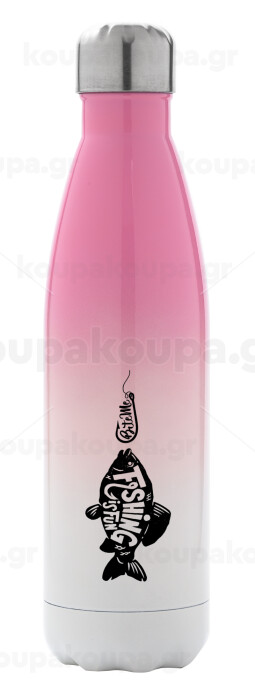 Fishing is fun, Μεταλλικό παγούρι θερμός Ροζ/Λευκό (Stainless steel), διπλού τοιχώματος, 500ml