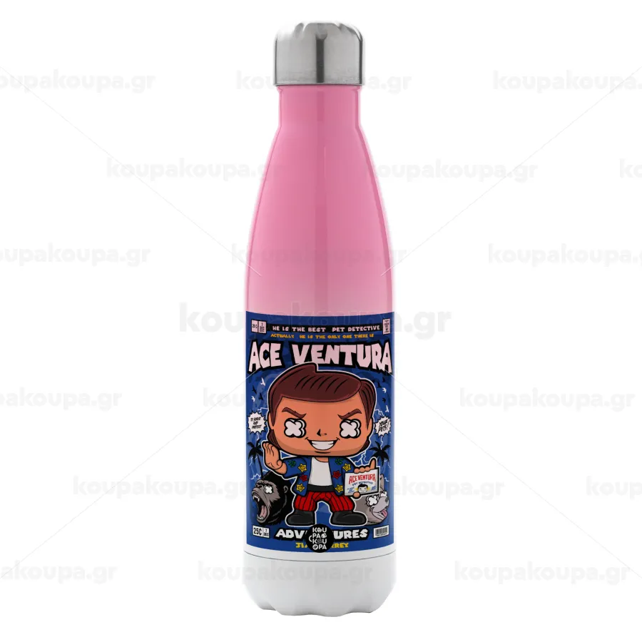 Ace Ventura: Pet Detective, Μεταλλικό παγούρι θερμός Ροζ/Λευκό (Stainless steel), διπλού τοιχώματος, 500ml