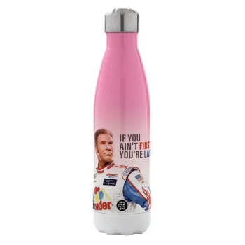 If You Ain't First You're Last Ricky Bobby, Talladega Nights, Μεταλλικό παγούρι θερμός Ροζ/Λευκό (Stainless steel), διπλού τοιχώματος, 500ml