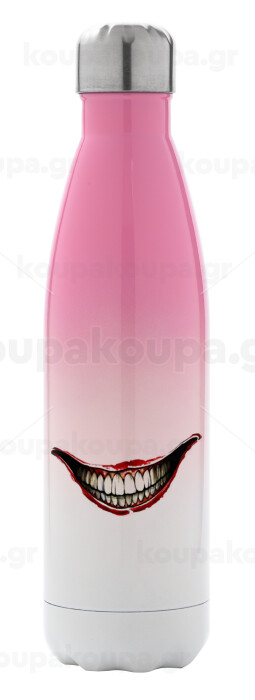 Joker smile, Μεταλλικό παγούρι θερμός Ροζ/Λευκό (Stainless steel), διπλού τοιχώματος, 500ml