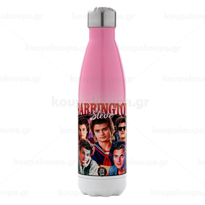Steve Harrington, Stranger Things, Μεταλλικό παγούρι θερμός Ροζ/Λευκό (Stainless steel), διπλού τοιχώματος, 500ml