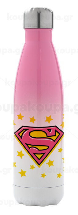 Superman Pink, Μεταλλικό παγούρι θερμός Ροζ/Λευκό (Stainless steel), διπλού τοιχώματος, 500ml