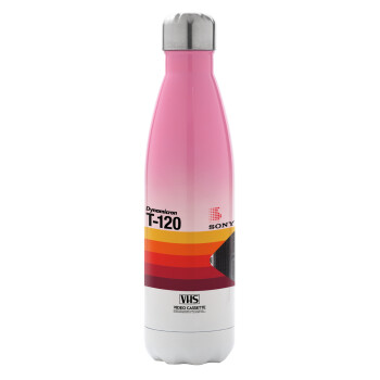 VHS sony dynamicron T-120, Μεταλλικό παγούρι θερμός Ροζ/Λευκό (Stainless steel), διπλού τοιχώματος, 500ml