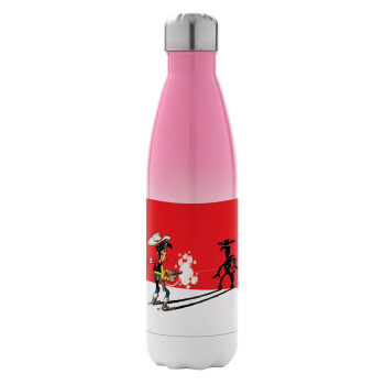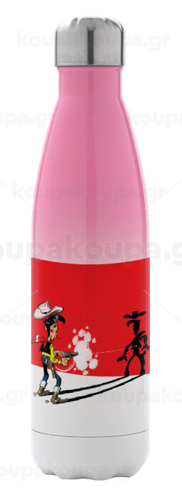 Λούκυ Λουκ σκιές, Μεταλλικό παγούρι θερμός Ροζ/Λευκό (Stainless steel), διπλού τοιχώματος, 500ml