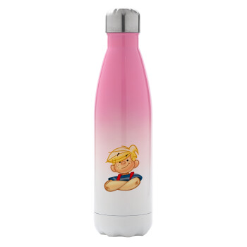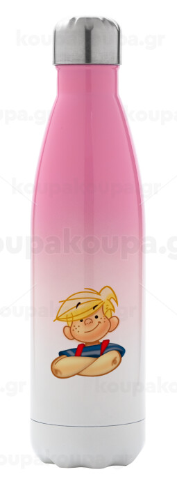 Ντένις ο τρομερός, Μεταλλικό παγούρι θερμός Ροζ/Λευκό (Stainless steel), διπλού τοιχώματος, 500ml