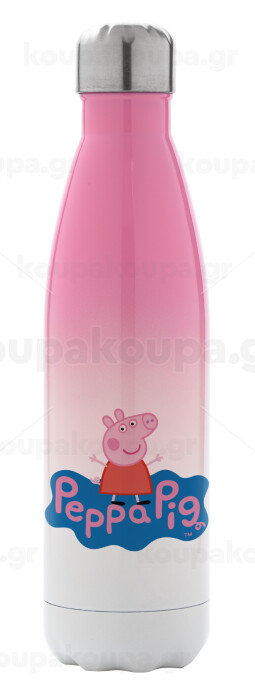 Πέππα το γουρουνάκι μπλε με όνομα, Μεταλλικό παγούρι θερμός Ροζ/Λευκό (Stainless steel), διπλού τοιχώματος, 500ml