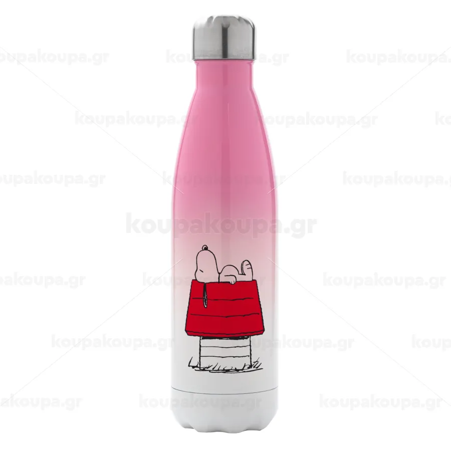 Το σπίτι του snoopy, Μεταλλικό παγούρι θερμός Ροζ/Λευκό (Stainless steel), διπλού τοιχώματος, 500ml