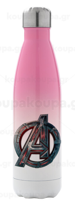 Avengers, Μεταλλικό παγούρι θερμός Ροζ/Λευκό (Stainless steel), διπλού τοιχώματος, 500ml