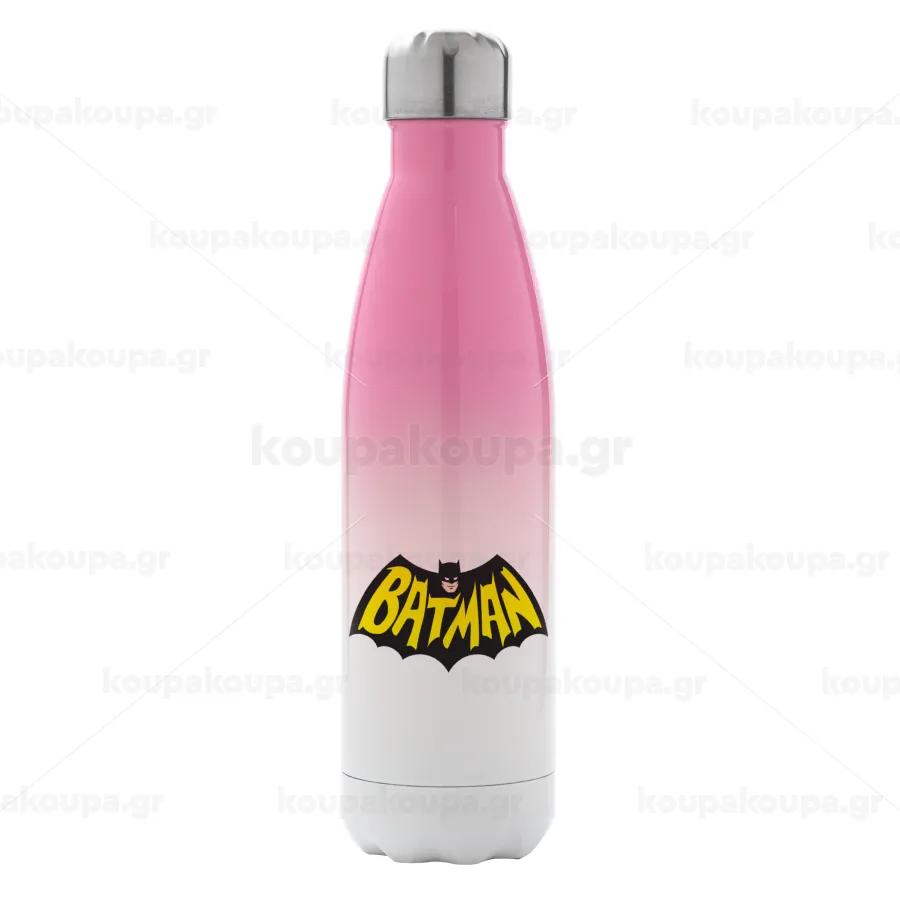 Batman classic logo, Μεταλλικό παγούρι θερμός Ροζ/Λευκό (Stainless steel), διπλού τοιχώματος, 500ml