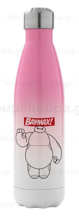 Baymax hi, Μεταλλικό παγούρι θερμός Ροζ/Λευκό (Stainless steel), διπλού τοιχώματος, 500ml