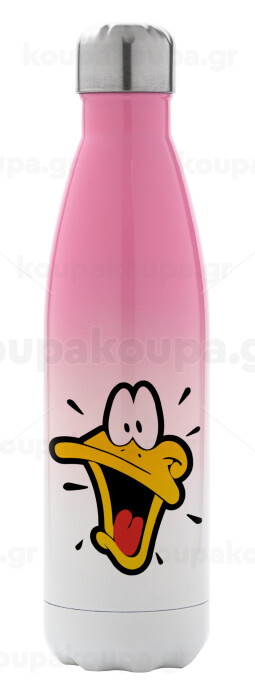 Daffy Duck, Μεταλλικό παγούρι θερμός Ροζ/Λευκό (Stainless steel), διπλού τοιχώματος, 500ml
