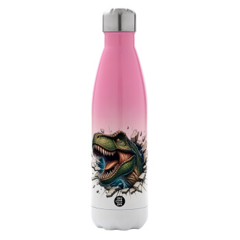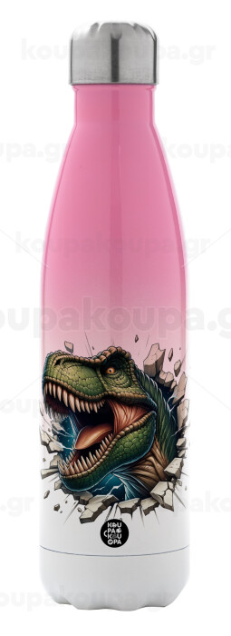 Dinosaur break wall, Μεταλλικό παγούρι θερμός Ροζ/Λευκό (Stainless steel), διπλού τοιχώματος, 500ml