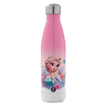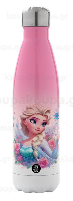 Elsa Princess, Μεταλλικό παγούρι θερμός Ροζ/Λευκό (Stainless steel), διπλού τοιχώματος, 500ml