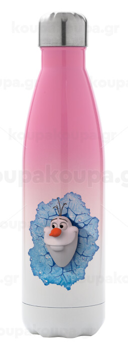 Frozen Olaf, Μεταλλικό παγούρι θερμός Ροζ/Λευκό (Stainless steel), διπλού τοιχώματος, 500ml