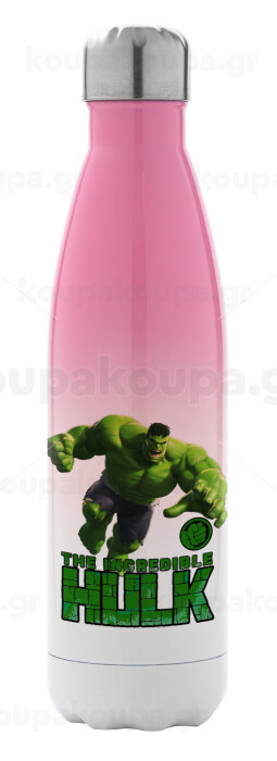 Hulk, Μεταλλικό παγούρι θερμός Ροζ/Λευκό (Stainless steel), διπλού τοιχώματος, 500ml