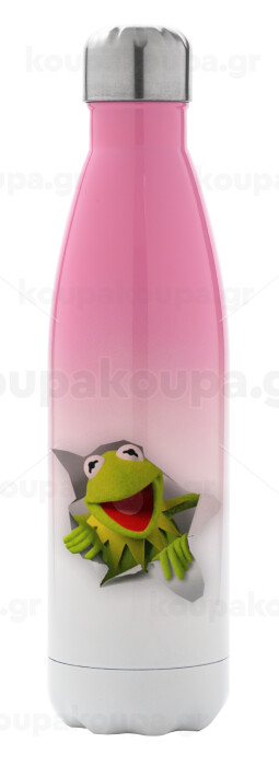 Kermit the frog, Μεταλλικό παγούρι θερμός Ροζ/Λευκό (Stainless steel), διπλού τοιχώματος, 500ml
