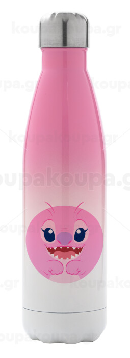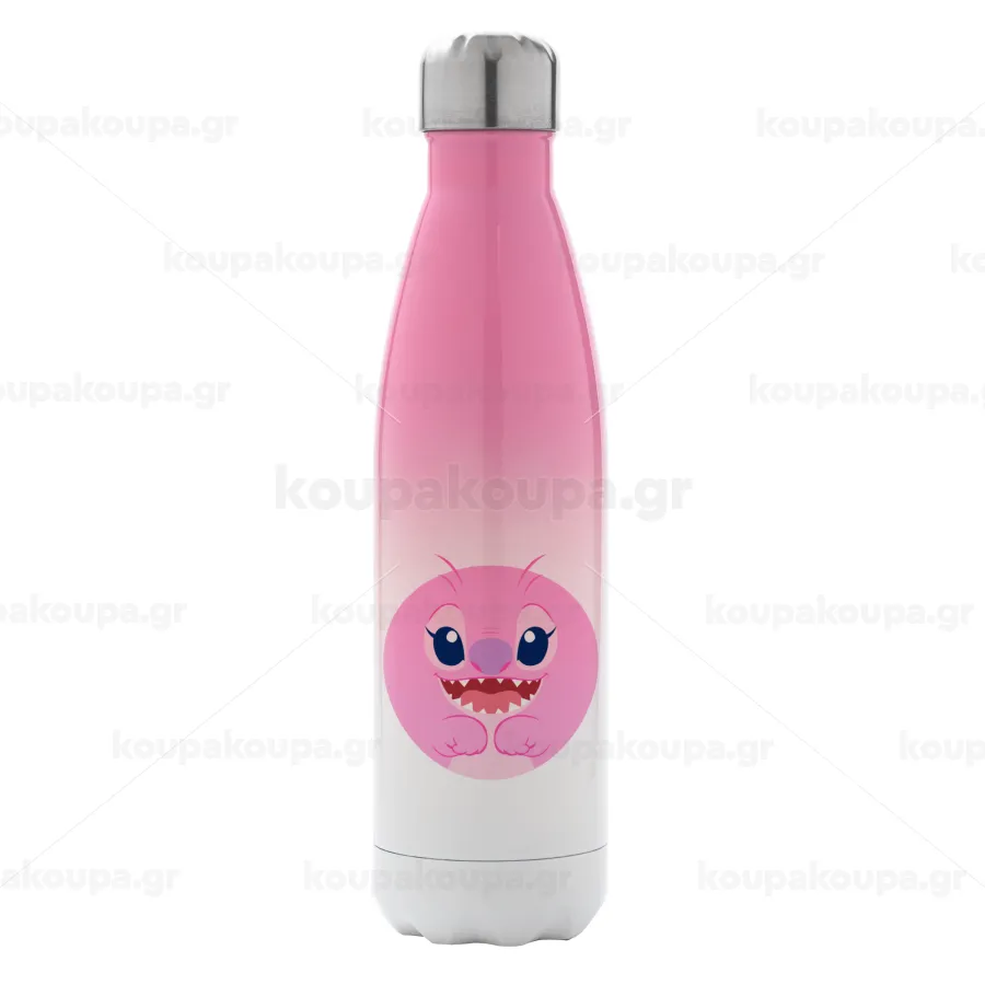 Lilo & Stitch Angel pink, Μεταλλικό παγούρι θερμός Ροζ/Λευκό (Stainless steel), διπλού τοιχώματος, 500ml