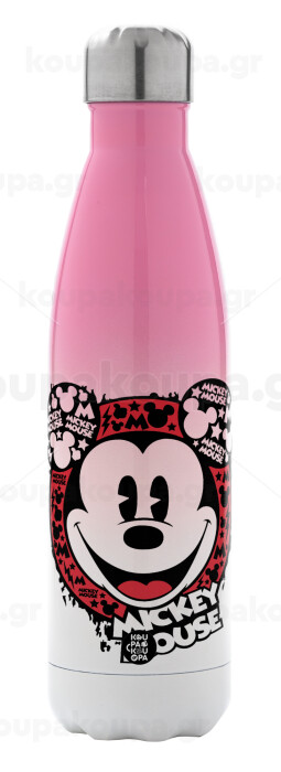 Mickey Mouse, Μεταλλικό παγούρι θερμός Ροζ/Λευκό (Stainless steel), διπλού τοιχώματος, 500ml