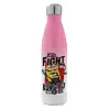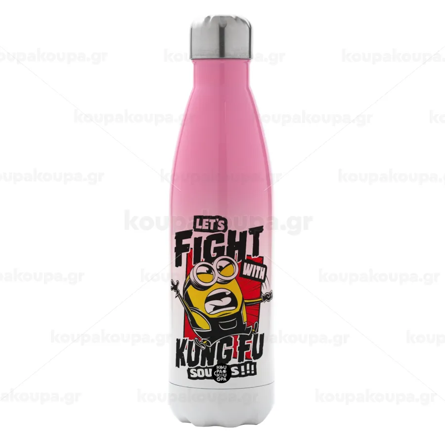 Minions Let's fight with kung fu sounds, Μεταλλικό παγούρι θερμός Ροζ/Λευκό (Stainless steel), διπλού τοιχώματος, 500ml