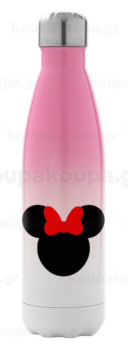 Minnie head, Μεταλλικό παγούρι θερμός Ροζ/Λευκό (Stainless steel), διπλού τοιχώματος, 500ml