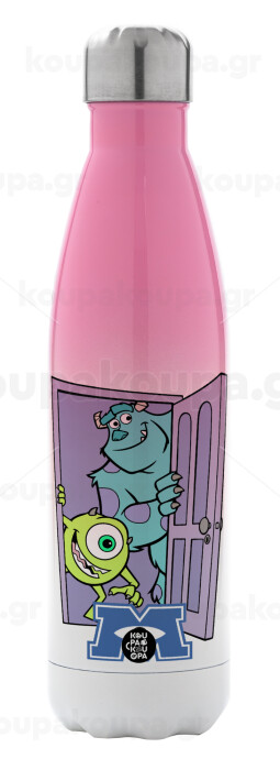 Monster inc, Μεταλλικό παγούρι θερμός Ροζ/Λευκό (Stainless steel), διπλού τοιχώματος, 500ml