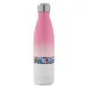Onepiece logo, Μεταλλικό παγούρι θερμός Ροζ/Λευκό (Stainless steel), διπλού τοιχώματος, 500ml