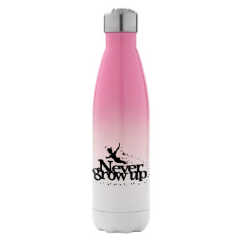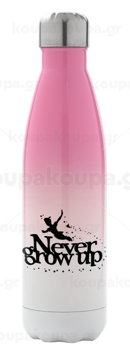 Peter pan, Never Grow UP, Μεταλλικό παγούρι θερμός Ροζ/Λευκό (Stainless steel), διπλού τοιχώματος, 500ml