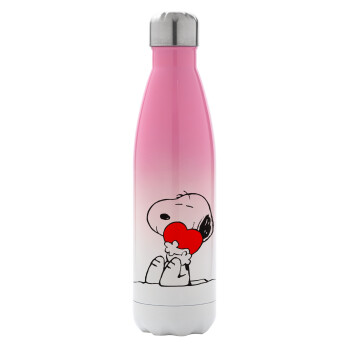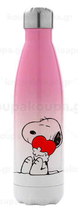 Snoopy, Μεταλλικό παγούρι θερμός Ροζ/Λευκό (Stainless steel), διπλού τοιχώματος, 500ml