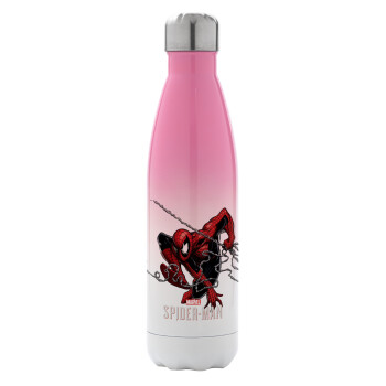 Spider-man, Μεταλλικό παγούρι θερμός Ροζ/Λευκό (Stainless steel), διπλού τοιχώματος, 500ml