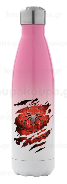 Spiderman cracked, Μεταλλικό παγούρι θερμός Ροζ/Λευκό (Stainless steel), διπλού τοιχώματος, 500ml