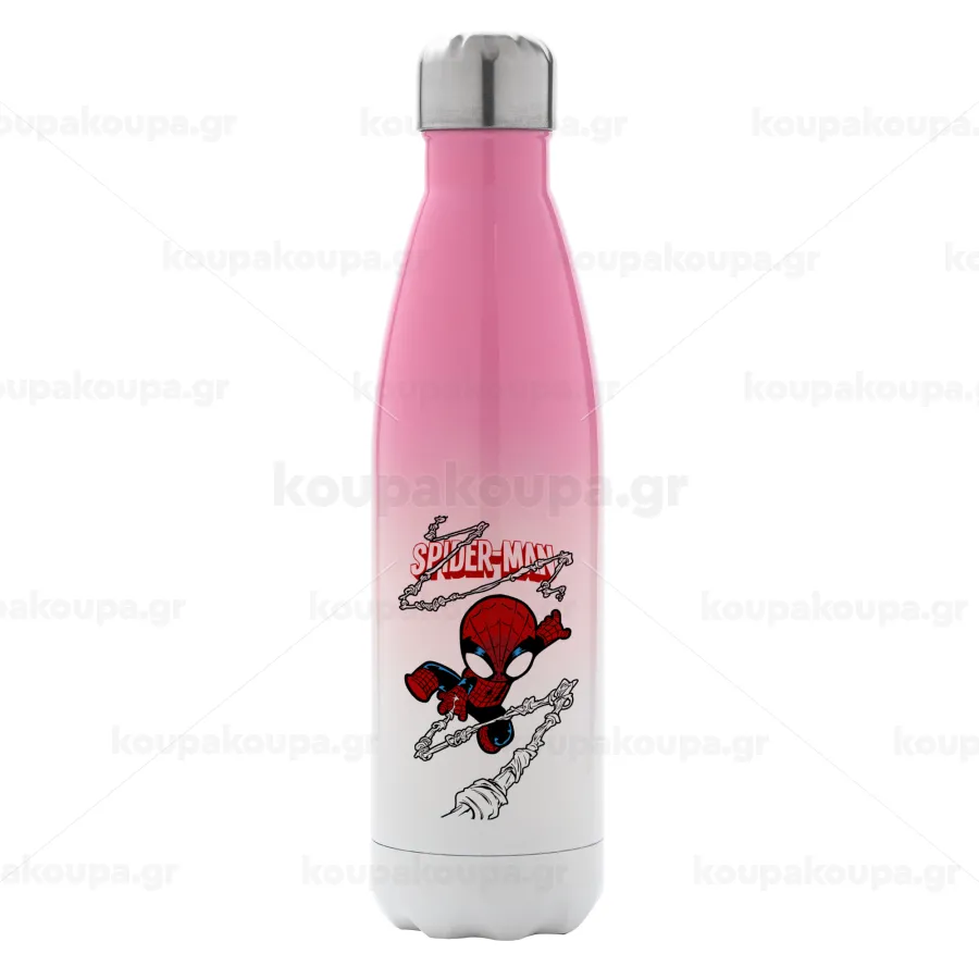 Spiderman kid, Μεταλλικό παγούρι θερμός Ροζ/Λευκό (Stainless steel), διπλού τοιχώματος, 500ml