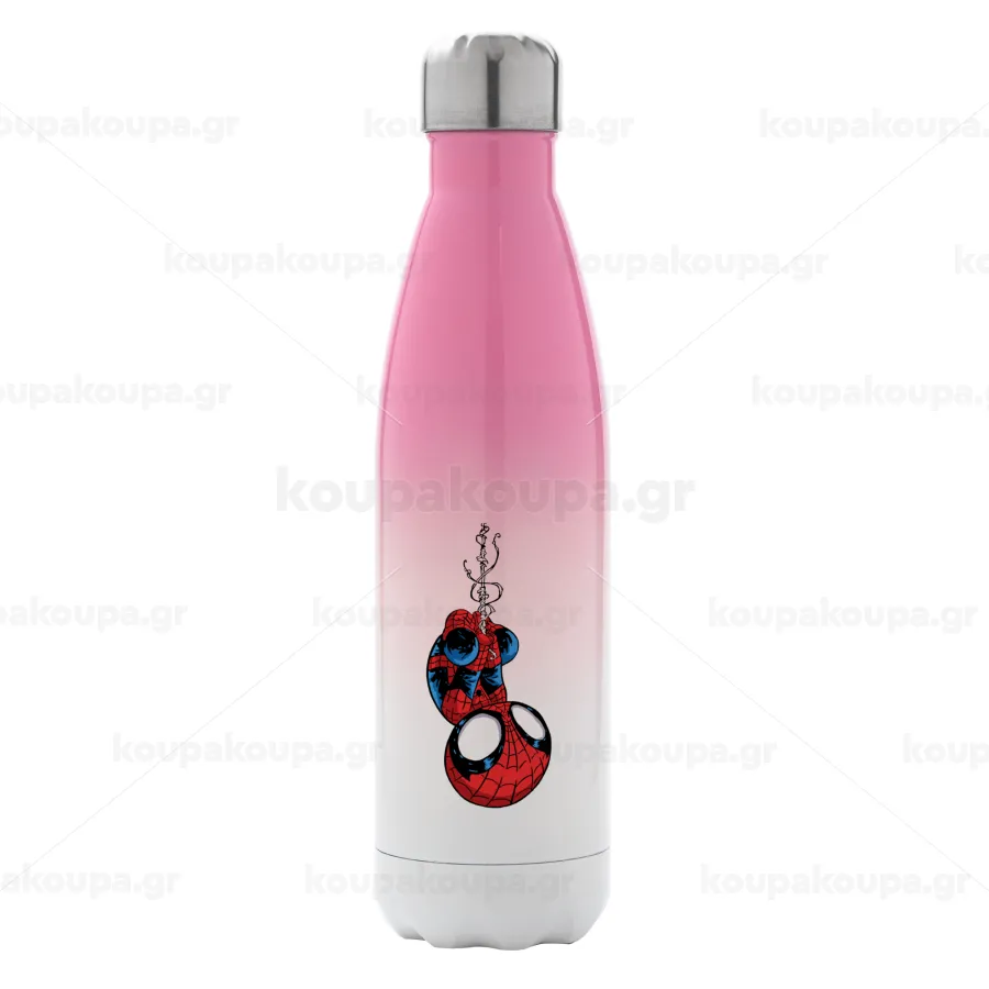 Spiderman upside down, Μεταλλικό παγούρι θερμός Ροζ/Λευκό (Stainless steel), διπλού τοιχώματος, 500ml