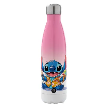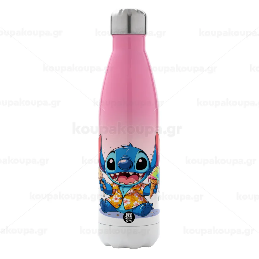 Stitch Ice cream, Μεταλλικό παγούρι θερμός Ροζ/Λευκό (Stainless steel), διπλού τοιχώματος, 500ml