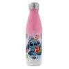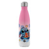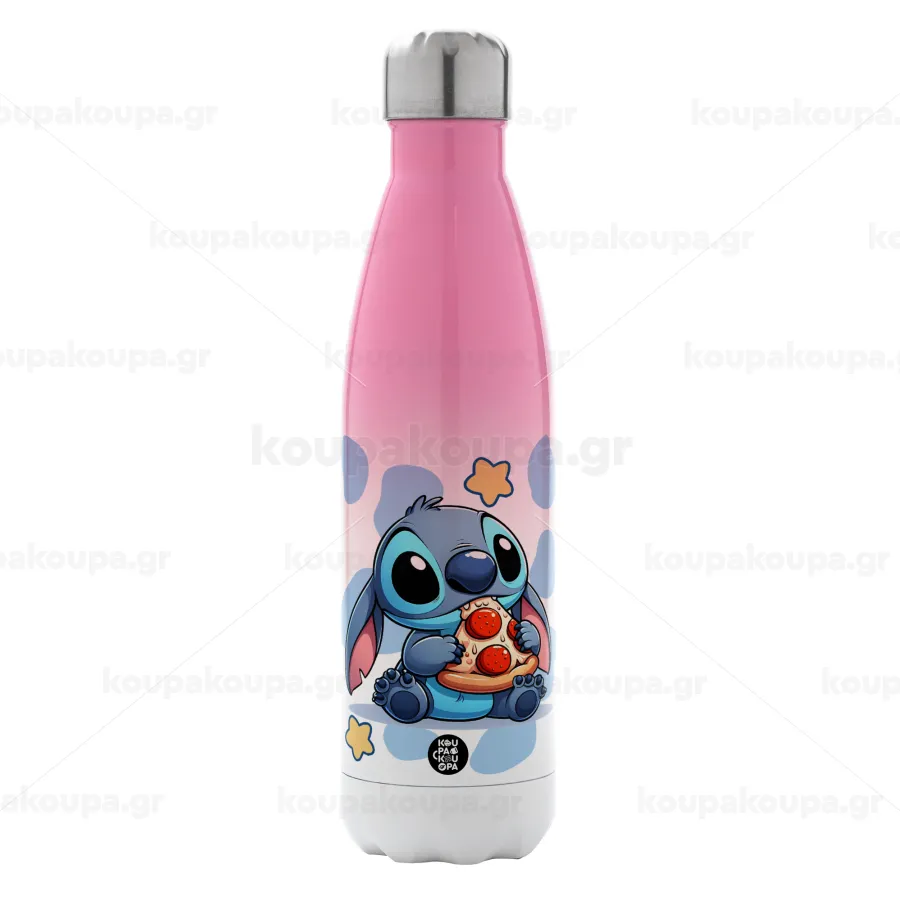 Stitch Pizza, Μεταλλικό παγούρι θερμός Ροζ/Λευκό (Stainless steel), διπλού τοιχώματος, 500ml