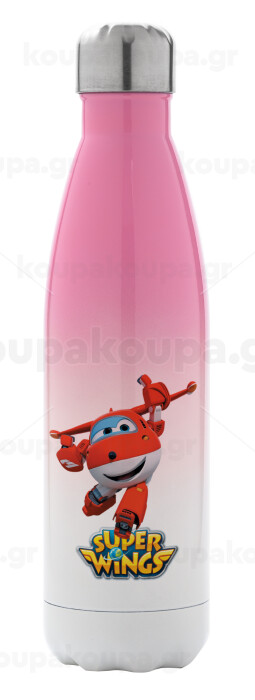 Super Wings, Μεταλλικό παγούρι θερμός Ροζ/Λευκό (Stainless steel), διπλού τοιχώματος, 500ml