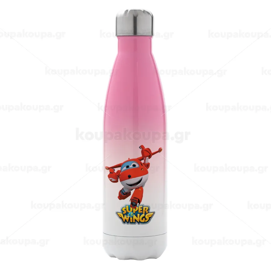 Super Wings, Μεταλλικό παγούρι θερμός Ροζ/Λευκό (Stainless steel), διπλού τοιχώματος, 500ml