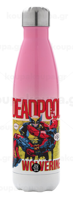 Superhero Deadpool Wolverine, Μεταλλικό παγούρι θερμός Ροζ/Λευκό (Stainless steel), διπλού τοιχώματος, 500ml