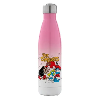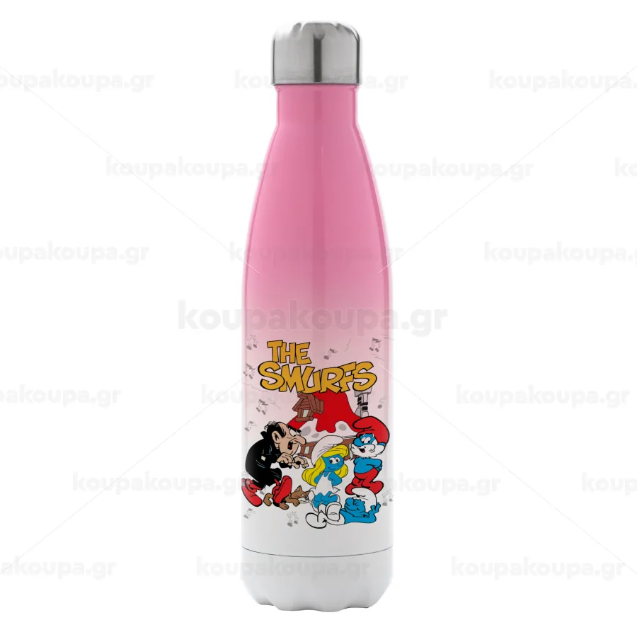Τα στρουμφάκια, Μεταλλικό παγούρι θερμός Ροζ/Λευκό (Stainless steel), διπλού τοιχώματος, 500ml