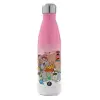 toystory characters, Μεταλλικό παγούρι θερμός Ροζ/Λευκό (Stainless steel), διπλού τοιχώματος, 500ml