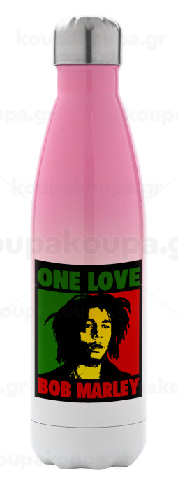 Bob marley, one love, Μεταλλικό παγούρι θερμός Ροζ/Λευκό (Stainless steel), διπλού τοιχώματος, 500ml