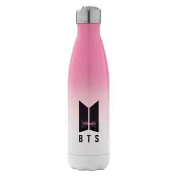 BTS, Μεταλλικό παγούρι θερμός Ροζ/Λευκό (Stainless steel), διπλού τοιχώματος, 500ml