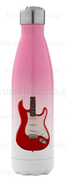 Guitar stratocaster, Μεταλλικό παγούρι θερμός Ροζ/Λευκό (Stainless steel), διπλού τοιχώματος, 500ml