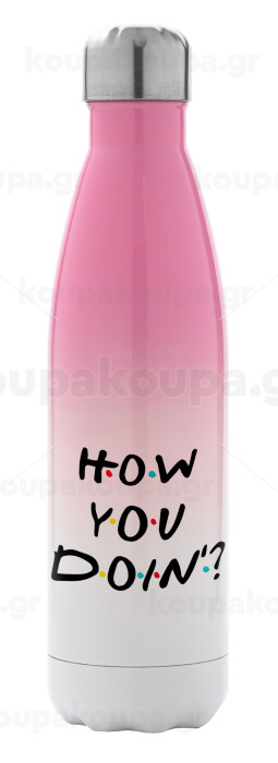 Friends How You Doin'?, Μεταλλικό παγούρι θερμός Ροζ/Λευκό (Stainless steel), διπλού τοιχώματος, 500ml