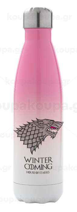 GOT House of Starks, winter coming, Μεταλλικό παγούρι θερμός Ροζ/Λευκό (Stainless steel), διπλού τοιχώματος, 500ml