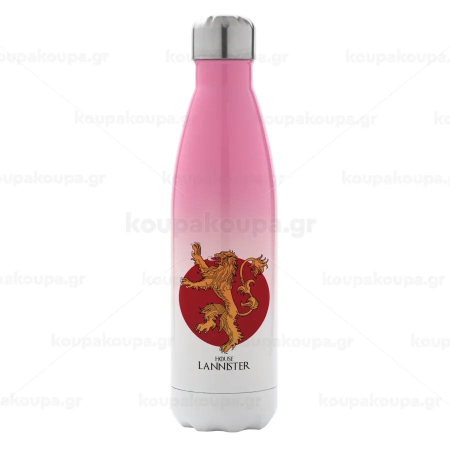 House Lannister GOT, Μεταλλικό παγούρι θερμός Ροζ/Λευκό (Stainless steel), διπλού τοιχώματος, 500ml