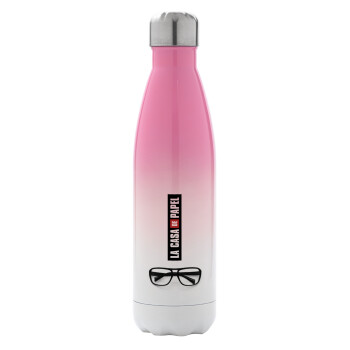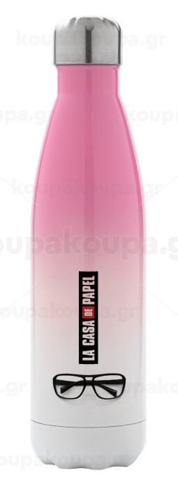 la professor, γυαλιά, Μεταλλικό παγούρι θερμός Ροζ/Λευκό (Stainless steel), διπλού τοιχώματος, 500ml