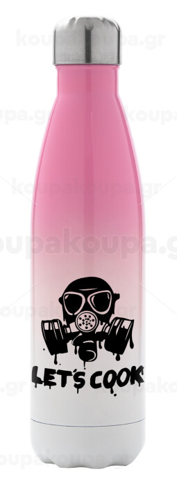 Let's cook mask, Μεταλλικό παγούρι θερμός Ροζ/Λευκό (Stainless steel), διπλού τοιχώματος, 500ml
