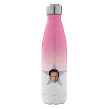 michael the office star, Μεταλλικό παγούρι θερμός Ροζ/Λευκό (Stainless steel), διπλού τοιχώματος, 500ml