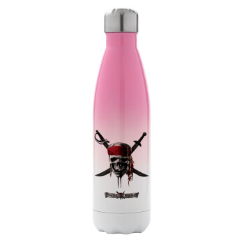 Pirates of the Caribbean, Μεταλλικό παγούρι θερμός Ροζ/Λευκό (Stainless steel), διπλού τοιχώματος, 500ml